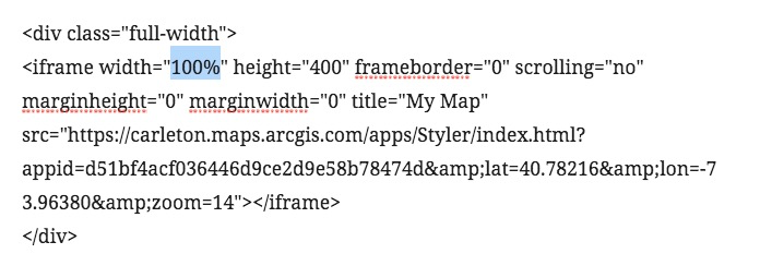 Adding a <div> element with class “full-width” and setting the below custom CSS on that element should make the embed’s edges scale right to the edges of the “vw” or Viewport Width. NB: This works best if you are using a single column theme with no sidebar, otherwise it might crowd over the sidebar content.