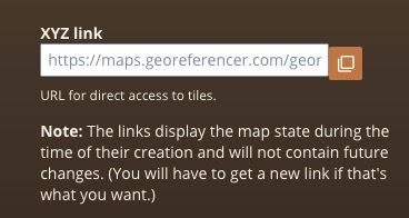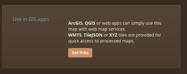 - Log into your Georeferencer account (or create a free one if you haven’t already), find the map you referenced (or any other map) and click GET LINKS on Use in GIS apps section of the This Map tab