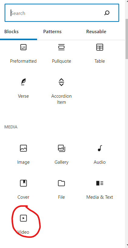 Step 5: Once you have your file, you can now upload it onto your webpage. On your WordPress webpage, click the add a new block and select, “Browse All” and at the bottom of the pane, you’ll find a video block. Once you add your MP4 file, you’ll be able to preview your 3D model on your webpage. WordPress has some other features you can play around with for your video.